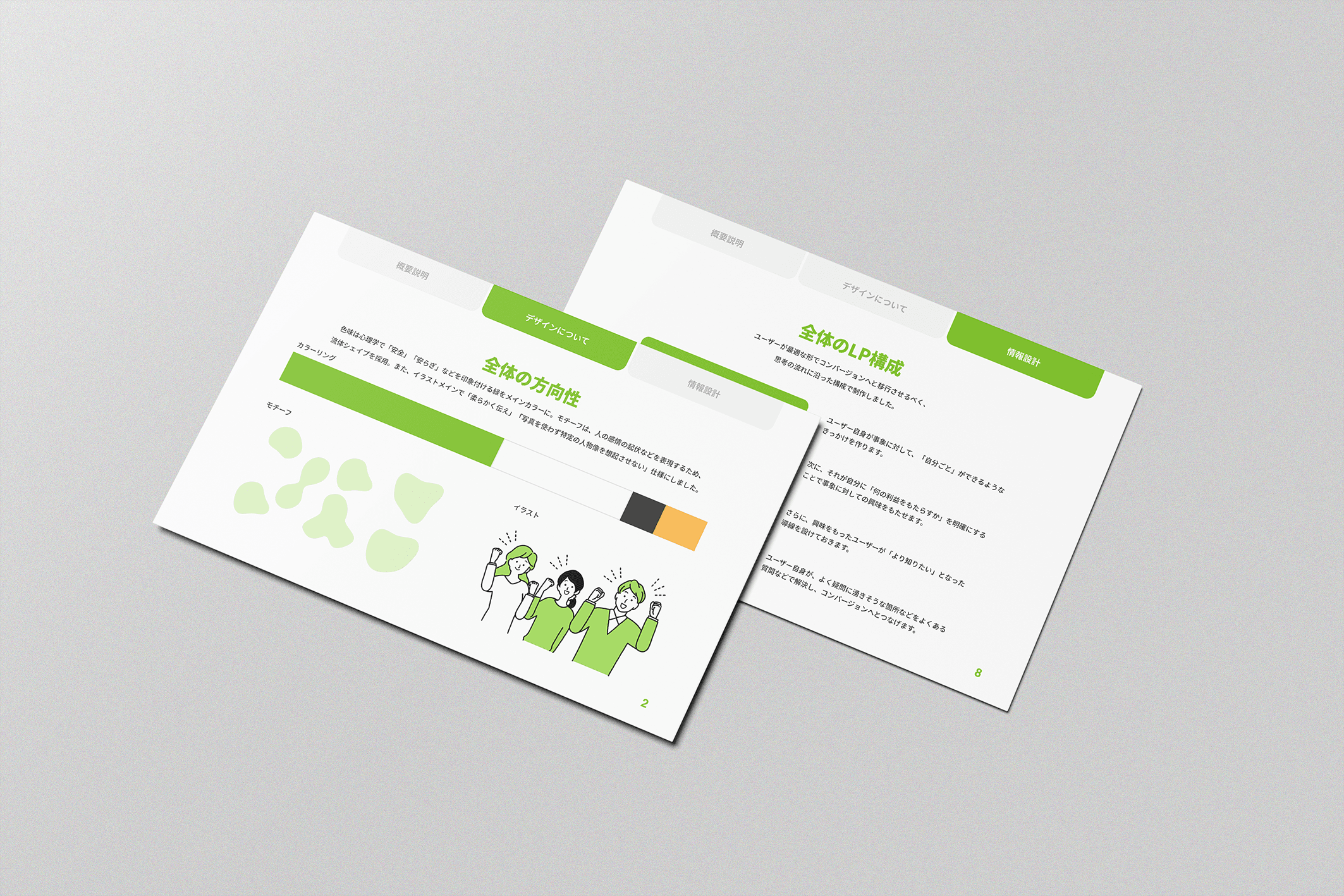 ご提案後、「わかりやすくまとまっているが、雰囲気はエンドユーザーよりも、サービス導入担当者に寄せた形にしたい」とのご要望がありました。そのため、「信頼感」が出るような雰囲気のデザインで再度ご提案差し上げました。結果、先方にも満足いただきスムーズに納品することができました。